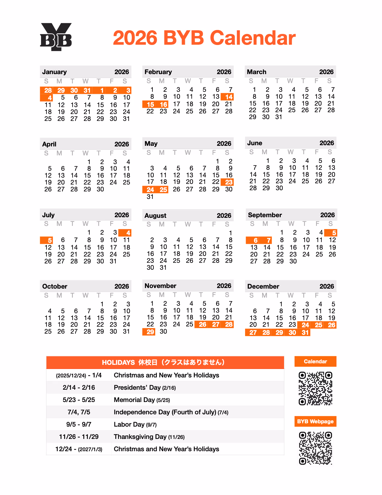 色付きの日は、BYBはお休みとなります。